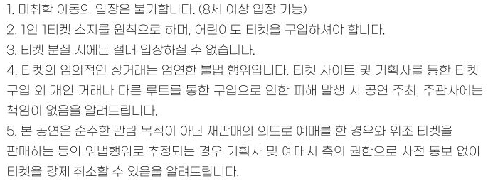 - VIP석 15,4000원 / R석 : 132,000원 / A석 : 110,000원