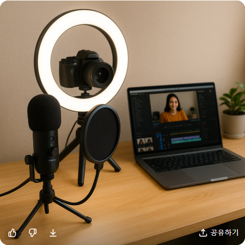 그래서 오늘은 저처럼 처음 1인 크리에이터를 준비하는 분들을 위해 반드시 갖춰야 할 장비 목록과, 그중에서도 가성비 좋은 마이크 추천 리스트를 정리해봤습니다. 전체 장비 구성은 카메라, 마이크, 조명, 삼각대, 보조 액세서리로 나눠서 설명드릴게요.